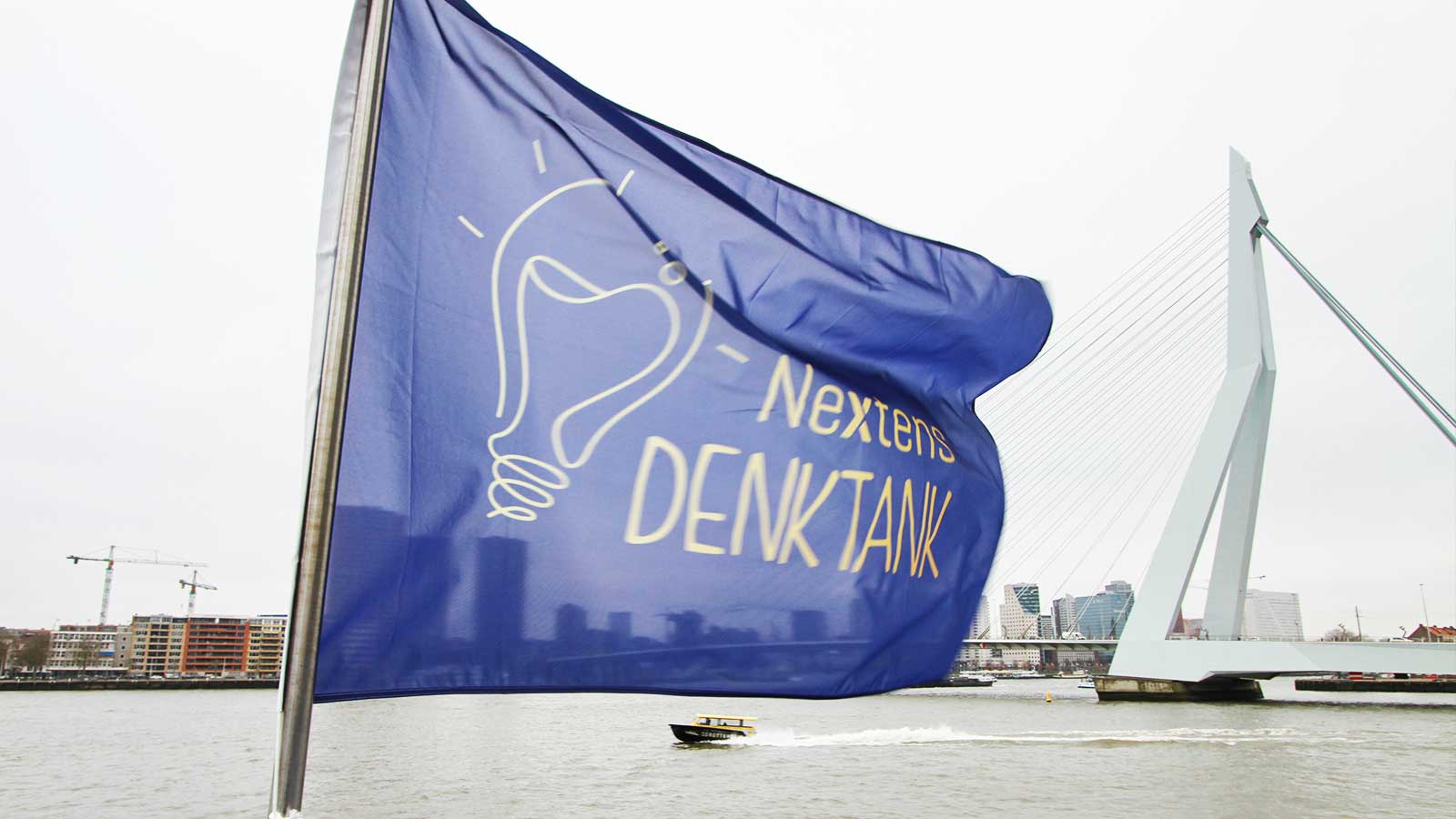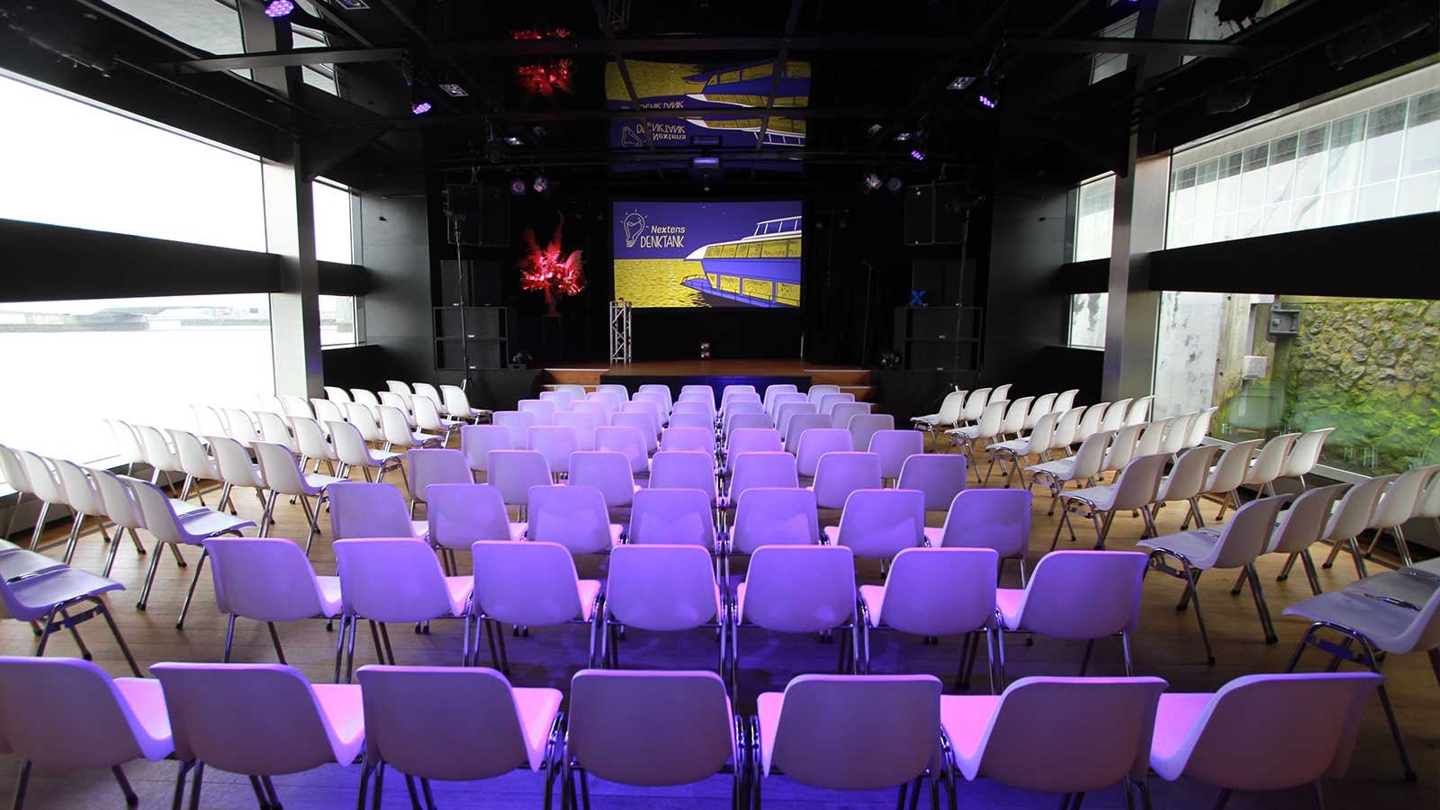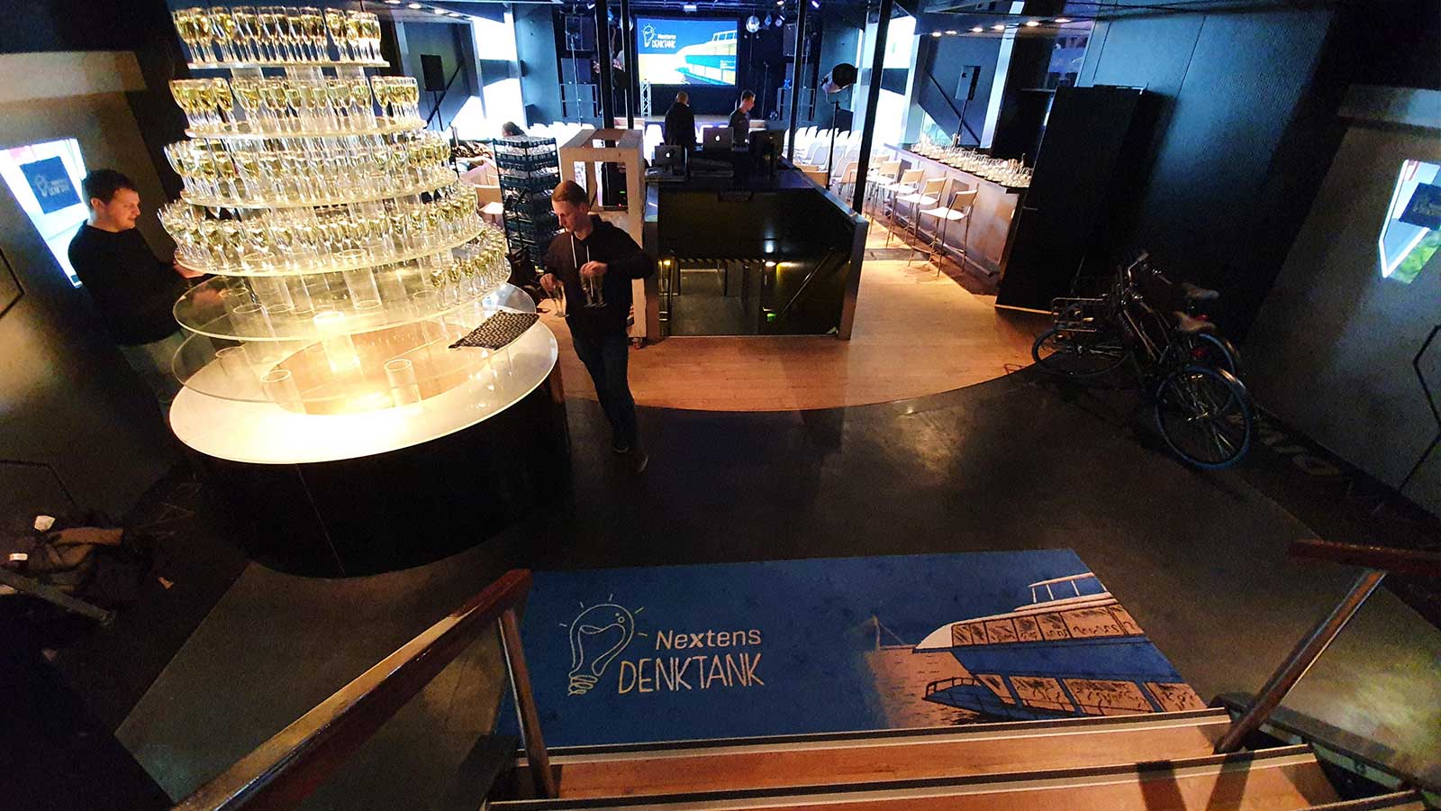 Adela Kuzelj, Customer Insight Specialist at Nextens, said afterwards: “Thanks to the many branding options, the name change was well received. ‘Nextens Denktank’ was presented in every imaginable way: on flags, screens and bars. The light matched to the new logo and its color, the gangway was provided with a banner and a colored carpet including the logo, so that the guests could see the new name and logo as soon as they entered the ship. The styling of the event was just perfect.”